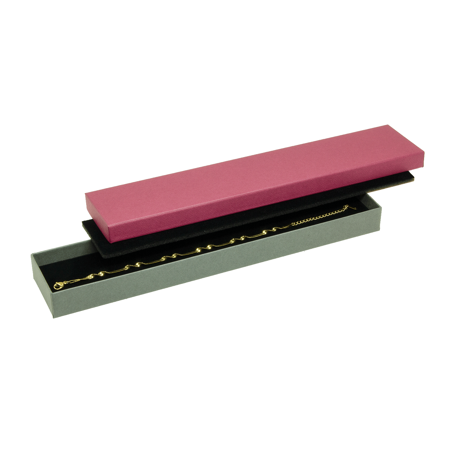 Onze sieradendoosjes uit de serie 0135 PICOT in de buitenkleur bessen/grijs zijn een duurzame en verpakking van hoge kwaliteit voor armbanden en horloges. De FSC®-certificering en de productie in Duitsland benadrukken onze kwaliteit en milieuvriendelijkheid. De afmetingen van 255 x 50 x 20 mm bieden voldoende ruimte voor uw juwelen. In de doos bevindt zich een beflockte schuimstofinleg in een elegante zwarte tint. Voor aanpassingsopties bieden we u de mogelijkheid tot foliedruk, optioneel in goud, zilver, zwart of bijna elke gewenste kleur. Ook meerkleurige reliëfdrukken zijn tegen meerprijs mogelijk.